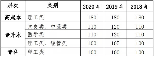 1.问:近几年广东省成人高考最低录取控制分数线?